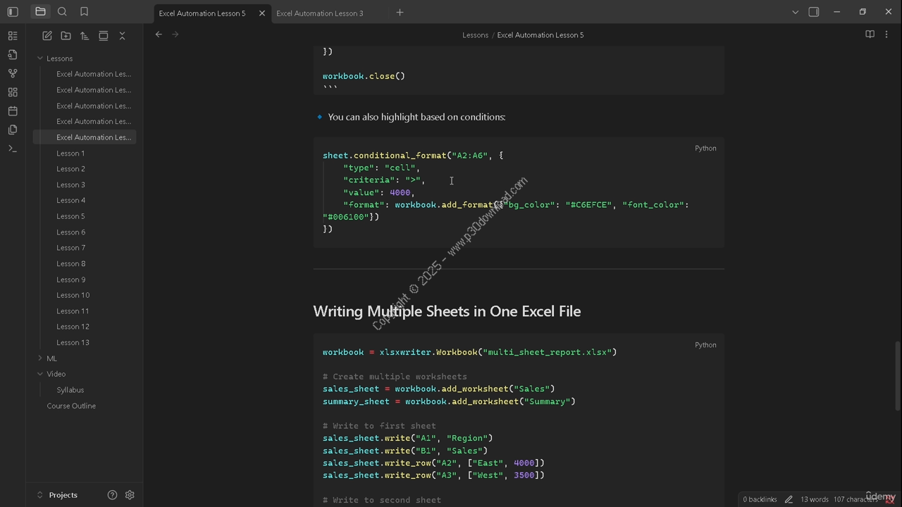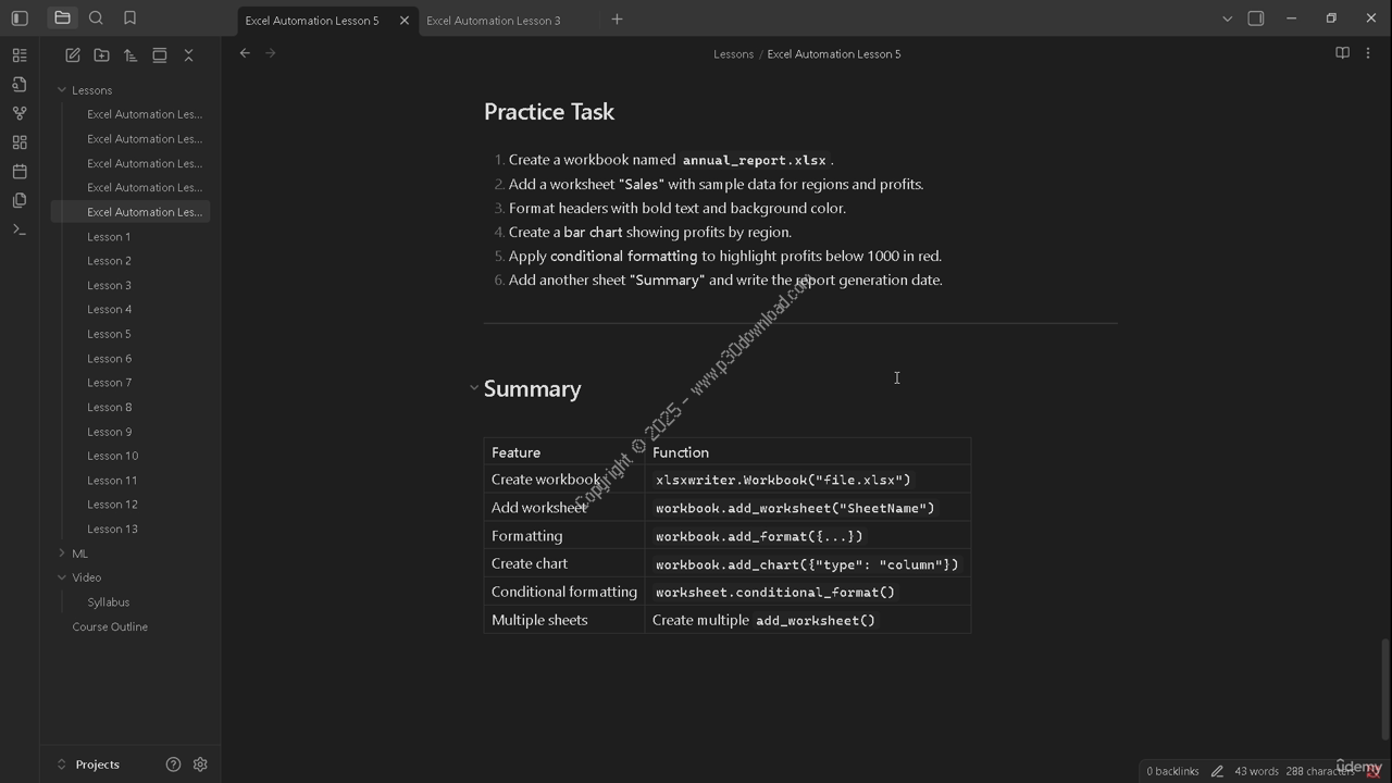 فهرست مطالب دوره Excel Automation with Python From Basics to Advanced Tasks:
