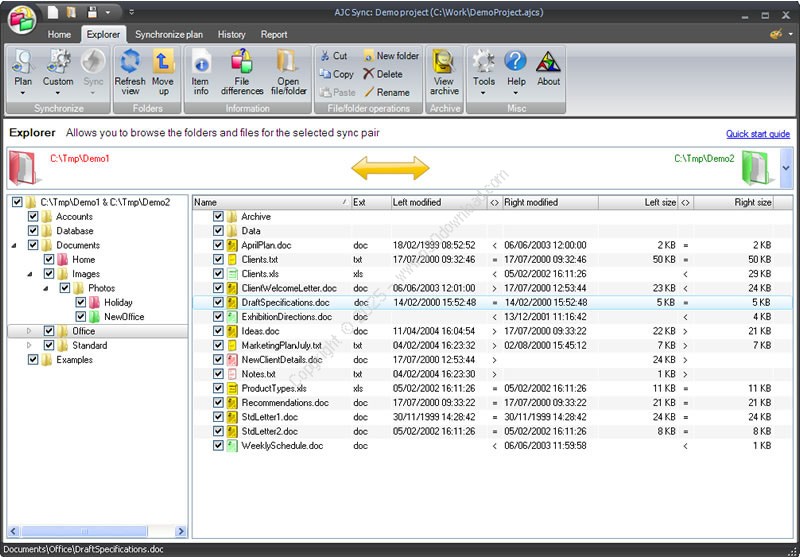 AJC Sync is a detailed and powerful program that can synchronize the contents of two directories. This can be performed with the standard logic, or with a user-defined logic.