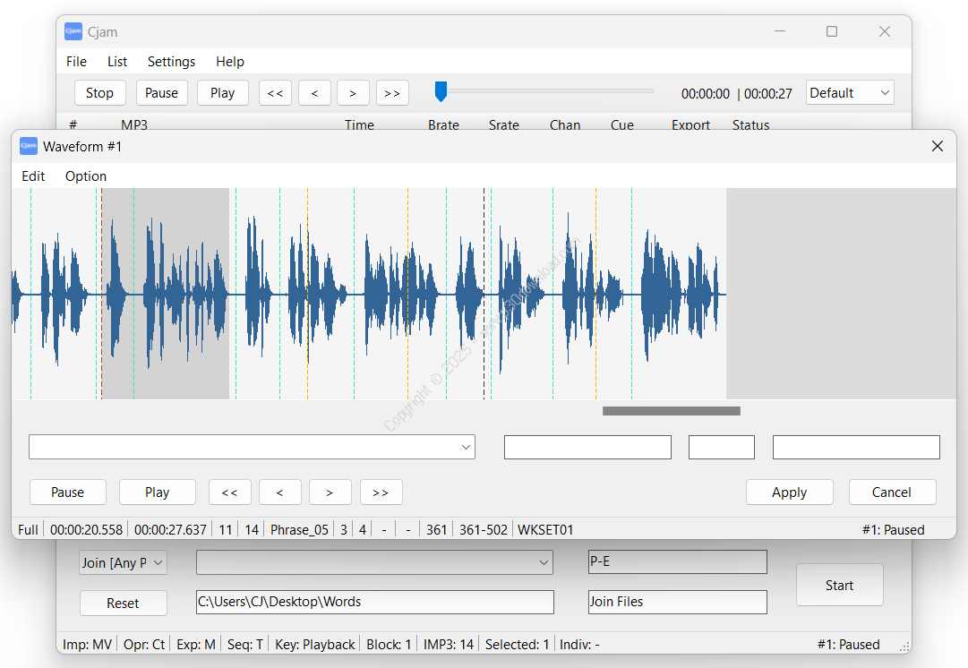 Cjam برای ویرایشهای سریع و بدون افت کیفیت (lossless) ایدهآل است—چه در حال برش یک قطعه موسیقی باشید، چه ادغام چند آهنگ یا آمادهسازی صدا برای ابزارهای یادگیری یا پادکستها.