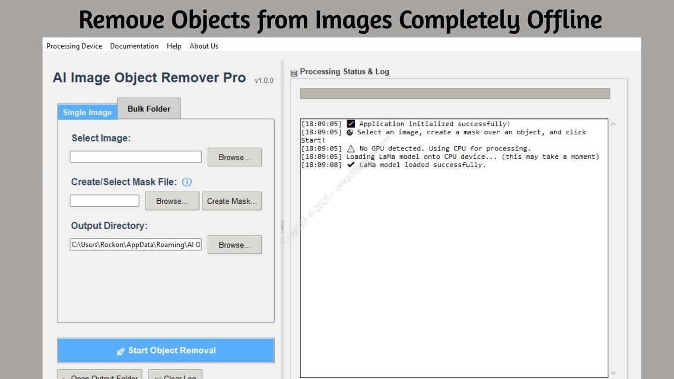 AI Image Object Remover Pro ابزار دسکتاپ نهایی برای حذف بیدردسر اشیا ناخواسته، افراد، متن یا لکهها از عکسها در عرض چند ثانیه است. این نرمافزار با بهرهگیری از مدل هوش مصنوعی پیشرفتهی LaMa (Large Mask Inpainting)، به طور هوشمند پسزمینهی پشت شیء حذفشده را بازسازی میکند و نتایجی طبیعی و یکپارچه ارائه میدهد که دستیابی به آنها با ابزارهای سنتی مانند Clone Stamp ناممکن است. این برنامه، چه برای عکاسان حرفهای و چه کاربران عادی، قدرت ویرایش لازم برای تبدیل یک عکس خوب به یک عکس عالی را در یک رابط کاربری ساده و بصری فراهم میآورد. این نرمافزار کاملاً آفلاین کار میکند، بنابراین حریم خصوصی کاربران تضمین شده و نیازی به اشتراک یا پرداخت اعتبار نیست.