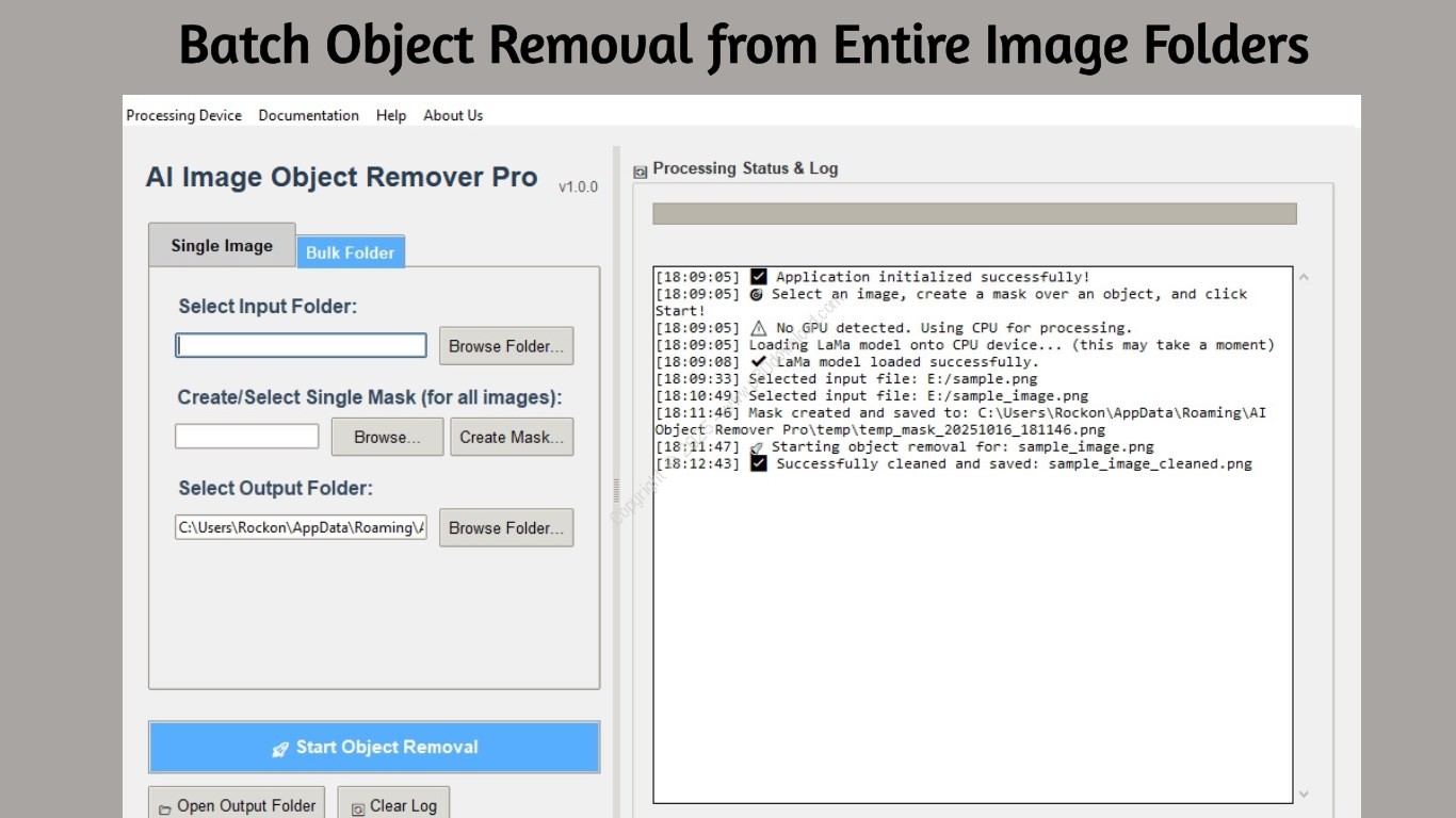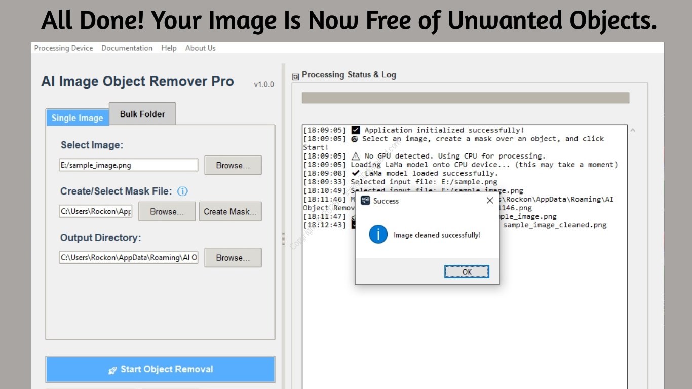 Effortlessly clean up your photos with AI Image Object Remover Pro, the ultimate tool for removing any unwanted objects, people, text, or blemishes in seconds. Powered by the advanced LaMa (Large Mask Inpainting) AI model, our application intelligently reconstructs the background behind the removed object, delivering natural and seamless results that are impossible to achieve with traditional clone stamp tools.