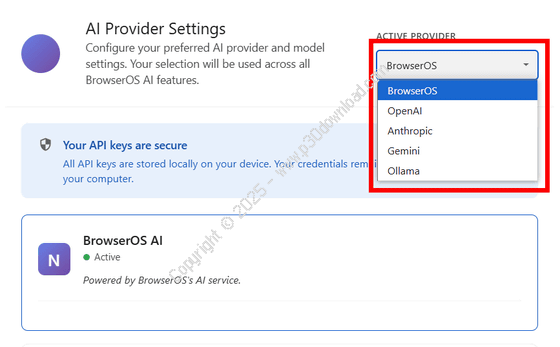 - حفظ حریم خصوصی کامل امکان استفاده از کلیدهای API شخصی یا مدلهای محلی از طریق Ollama، به طوری که سابقه مرور همیشه روی کامپیوتر شما بماند