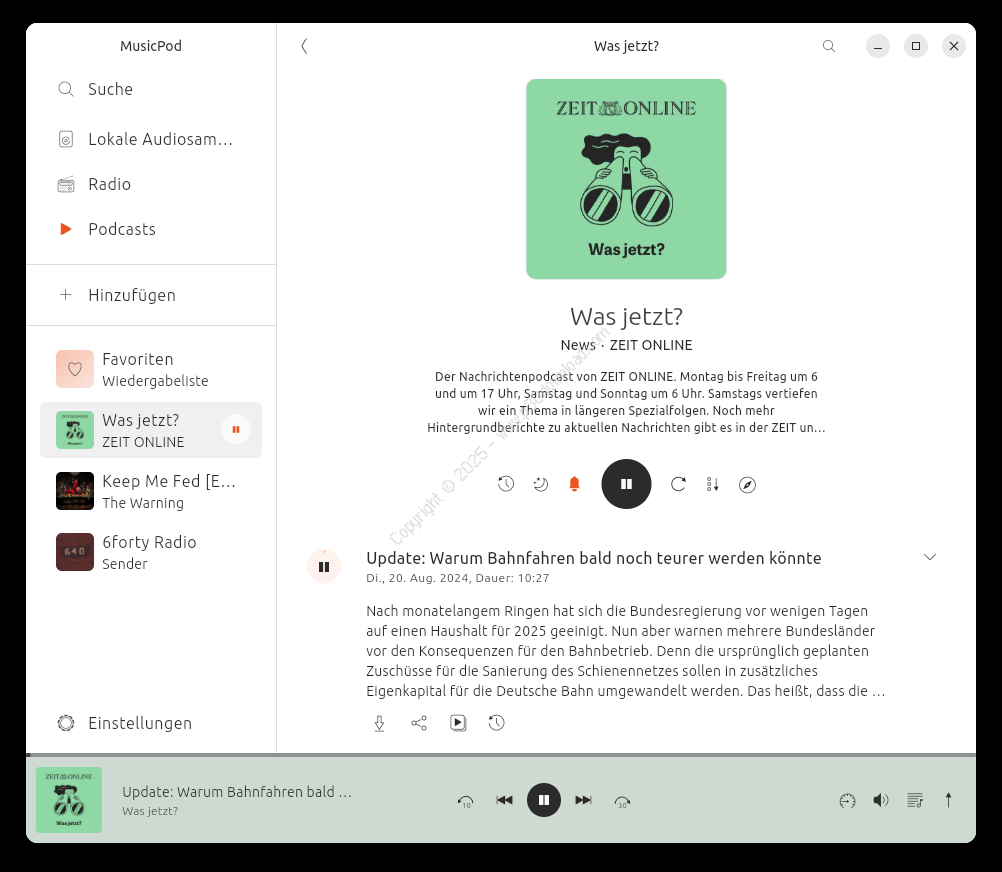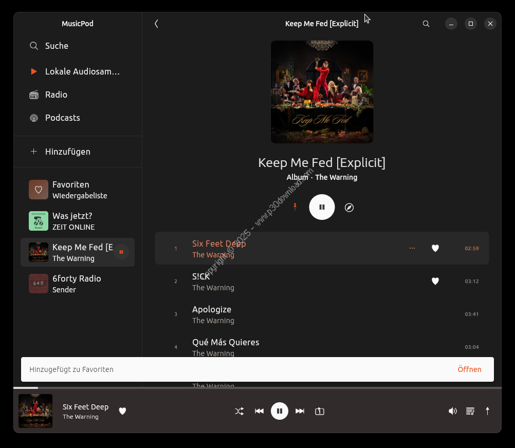 MusicPod is a super simple app that lets you play your music, listen to podcasts, and stream internet radio—all in one place. Just open it, add your music files, or search for something cool to listen to. No complicated menus, no confusing settings—just play, pause, skip, and enjoy. It supports all the usual music formats like MP3, FLAC, and M4A, and it even remembers your favorite stuff.