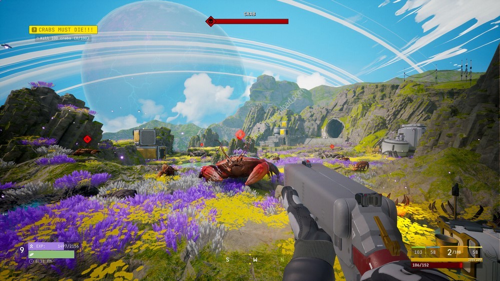 CRABS MUST DIE! is an open-world shooter with RPG elements filled with crabs and bizarre enemies. Players explore a dangerous, free world, battling crabs, meat-hungry zombies, raiders, and deranged robots. Weapons include shotguns, assault rifles, carbines, and even beer bottles, while players can upgrade skills and stats to enhance their character.