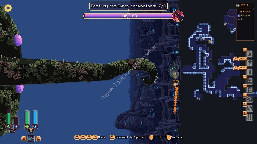 Wall World 2 delivers a richer, more evolved adventure that builds upon the original’s mining-focused roguelite formula. Players journey through the massive, ever-shifting Wall in their robospider, exploring procedurally generated mines filled with dangers, rare resources, and forgotten technologies vital for upgrading their exosuit and mobile battle station.