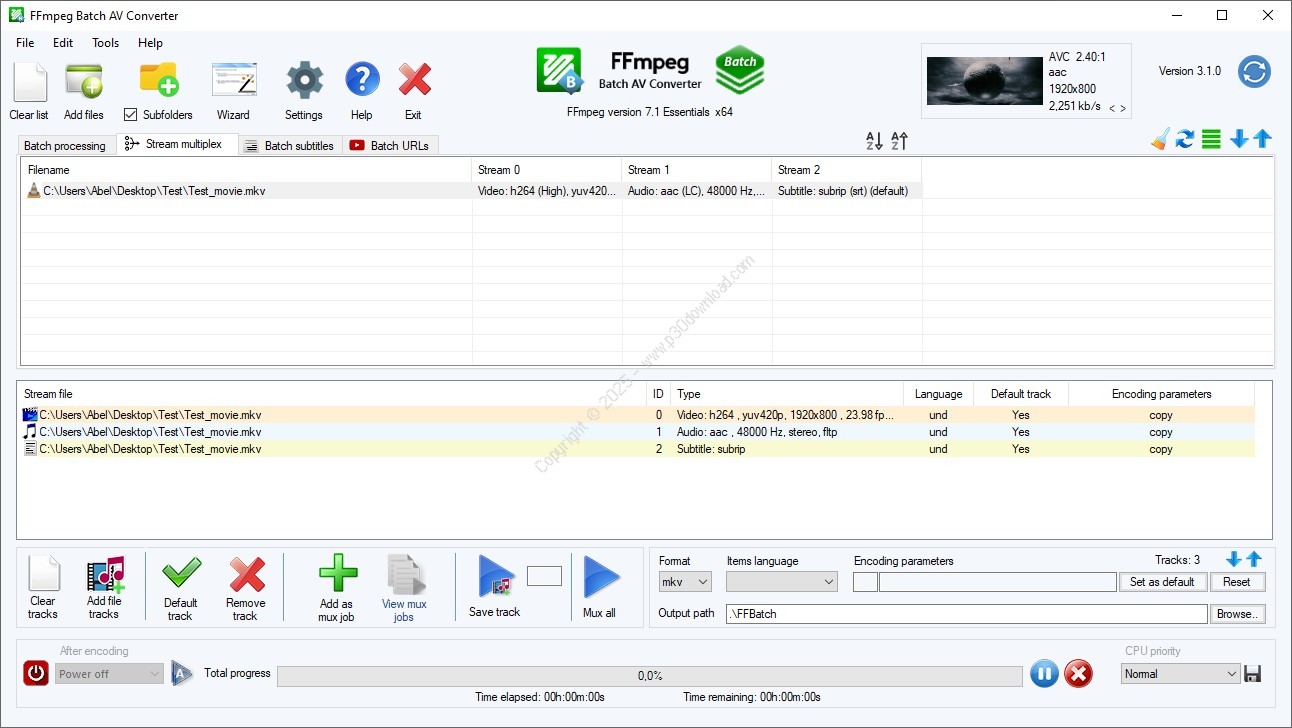 It provides unlimited single or multi-file batch encoding for almost any audio/video format. You can use any set of parameters and try them before starting encoding. You can manipulate and multiplex streams, batch subtitle videos (as track and hardcoded), trim, concatenate, record screen, capture M3u8 or other media URLs. You can also access useful multimedia file information.