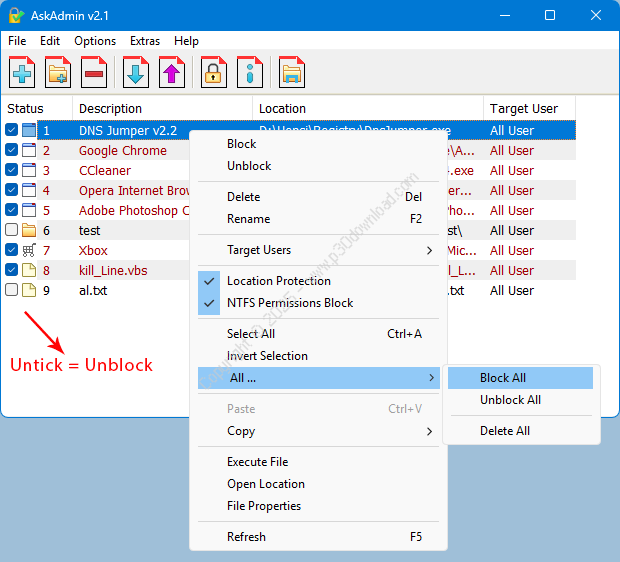 سخقیعپ, سخقیعئ,دانلود AskAdmin نرمافزار کنترل دسترسی و مسدودسازی برنامهها و فایلها,