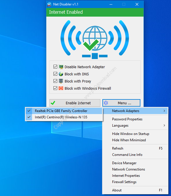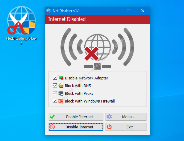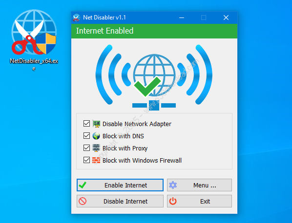 Net Disabler is a freeware utility designed to provide a quick and guaranteed way to temporarily block or enable Internet access on a computer.,