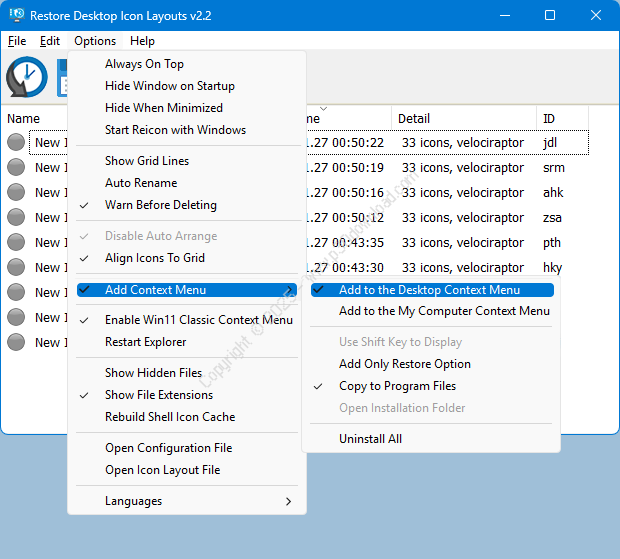 - امکان افزودن آسان "Save/Restore Icon Layout" به منوی زمینهای راستکلیک دسکتاپ یا My Computer