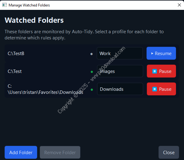 - فراهم کردن قابلیت مرتبسازی خودکار (Auto-tidy) که یک پوشه را نظارت کرده و فایلهای جدید را به طور خودکار مرتب میکند