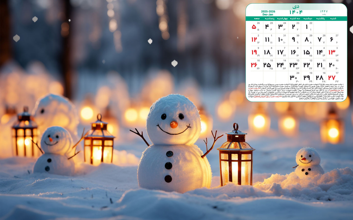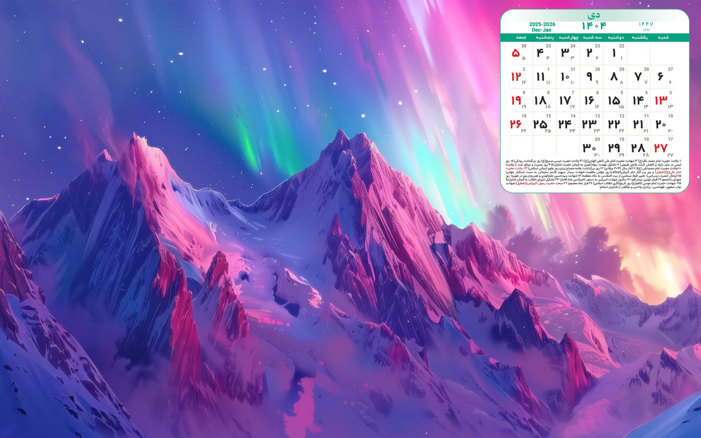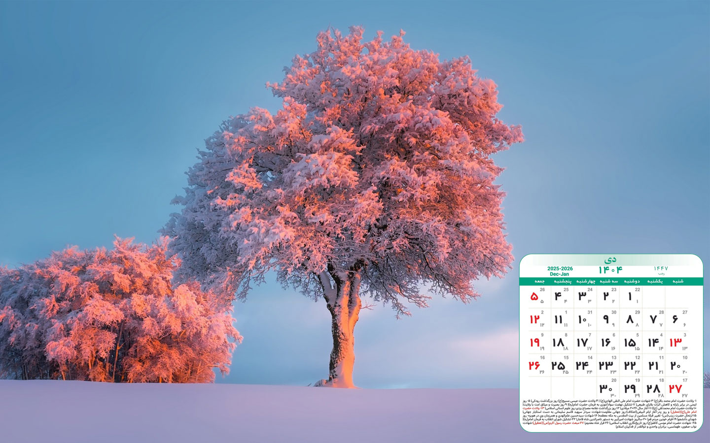 والپیپرهای زیبا به همراه تقویم دی 1404,