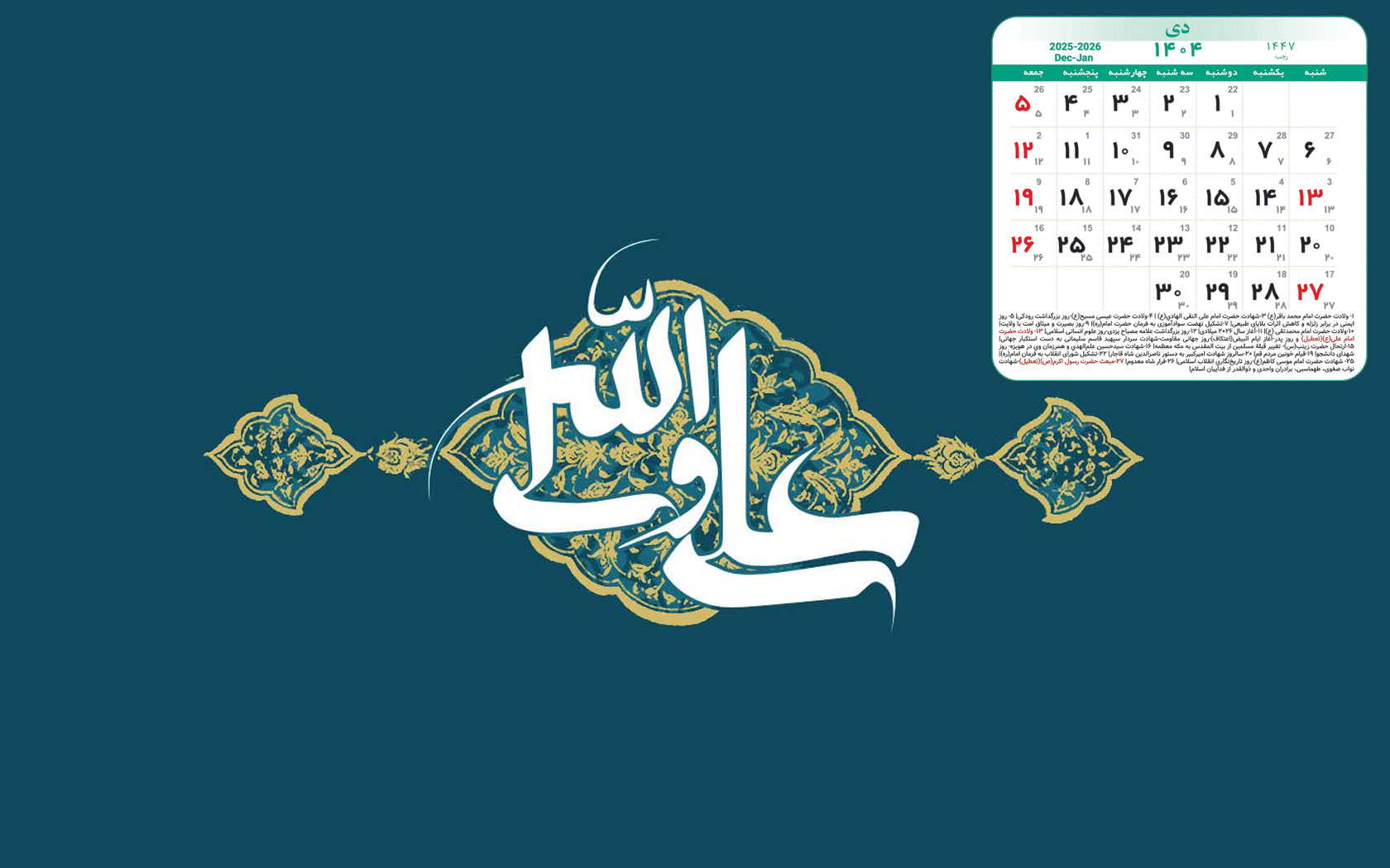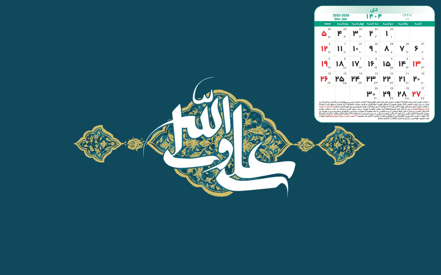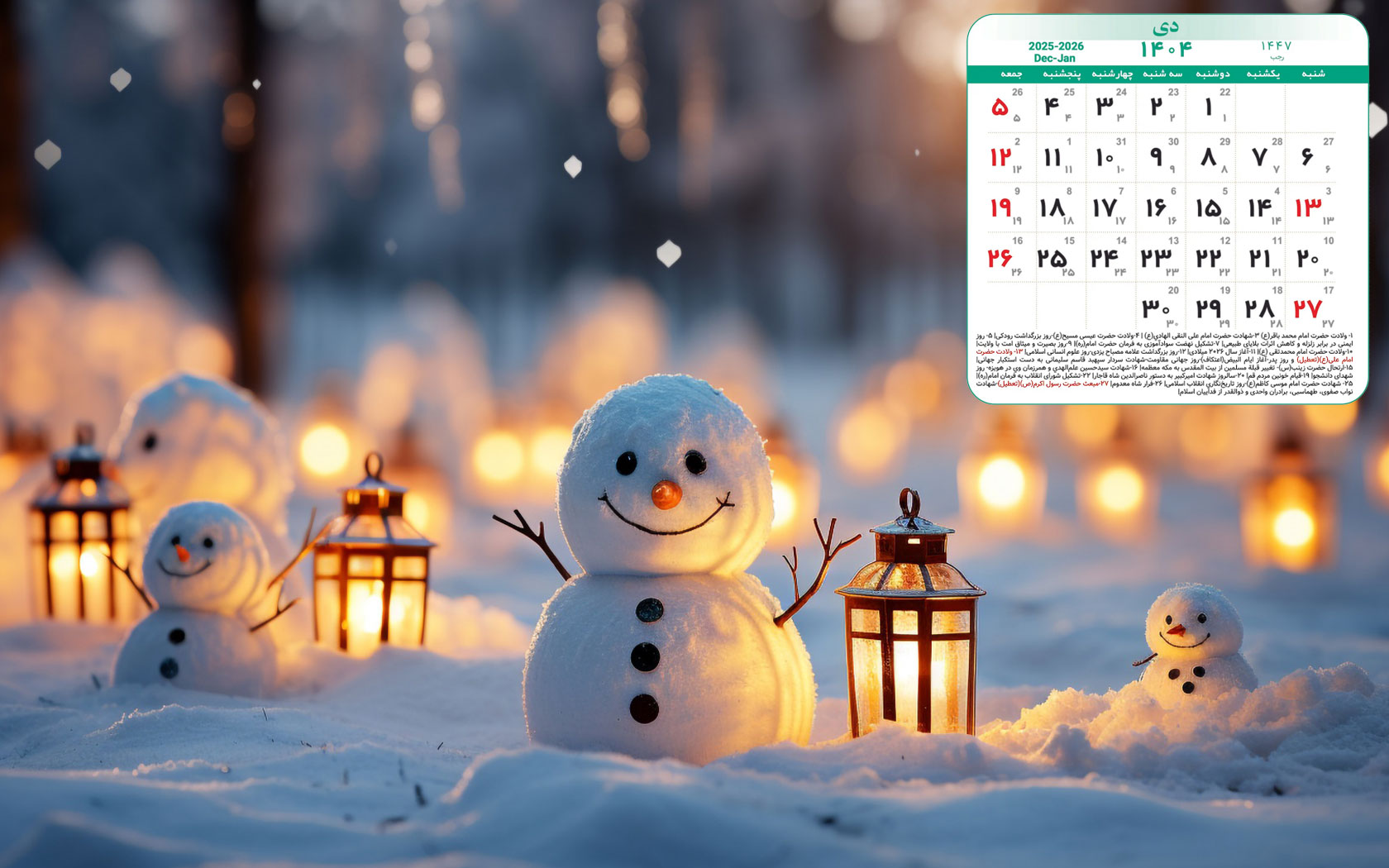 والپیپرهای زیبا به همراه تقویم دی 1404,