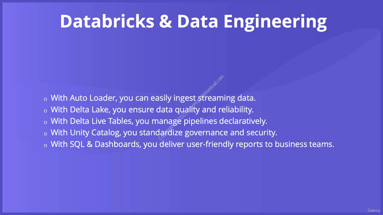 Welcome to "Python, Databricks & Apache Spark: Complete ETL Engineering" course.Build powerful ETL pipelines using Python, Databricks and Apache Spark to turn raw data into trusted business insights.Python is one of the most powerful and widely used programming languages in data engineering and analytics. Its rich ecosystem, including libraries like Pandas, PySpark and NumPy, allows you to process data efficiently, automate workloads, and build scalable ETL systems.Databricks is a unified analytics and data engineering platform designed to simplify big data processing and machine learning workflows. Built on Apache Spark, it provides an optimized environment for creating reliable, high-performance ETL pipelines, collaborative notebooks, and enterprise-grade data governance with Unity Catalog.In this course, we will take you through everything you need to know to master data engineering using Python, Databricks and Apache Spark, supported by diagrams, hands-on examples, and real ETL pipeline development.
