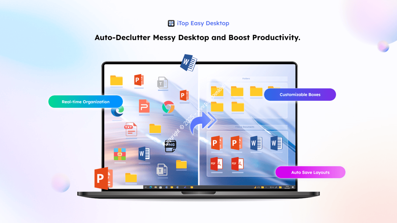 iTop Easy Desktop is a lightweight, professional-grade desktop organizer designed to help Windows users manage their digital workspace with flexibility and ease.,