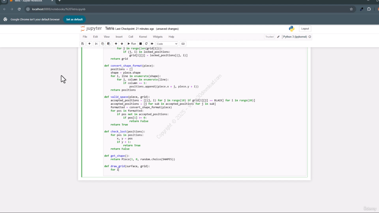 Complete Python Game Development: Build 6 Classic Games from ScratchWelcome to the ultimate Python game development course! Whether you're a complete beginner or someone looking to deepen your programming knowledge, this course will guide you step by step through the process of building six classic games using Python. With a project-based approach, you'll not only learn Python in a practical way but also gain real experience creating games that are fun, engaging, and playable.In this course, you’ll start by mastering core Python programming concepts, such as variables, functions, loops, conditions, and data structures. But we won't just focus on theory; you will apply these concepts immediately by building actual games.