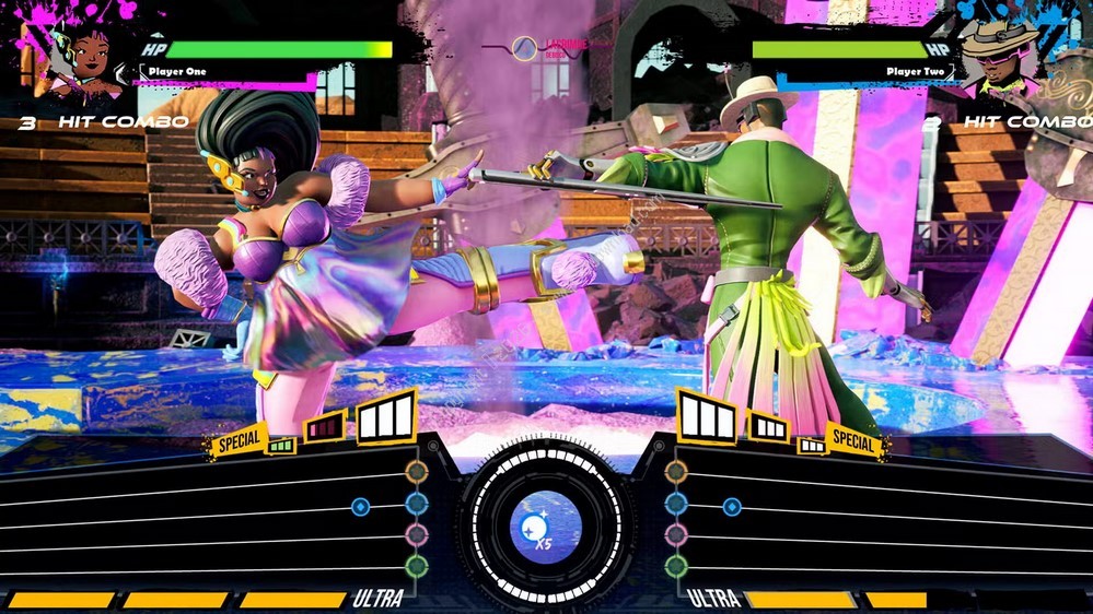 The God of Rock has gathered the universe’s greatest musicians to clash for musical supremacy. Battle to the beat by hitting notes in rhythm and unleash harmonic attacks against opponents in this competitive rhythm-fighting game hybrid. The mysterious God of Rock has revived the souls of the universe’s greatest musicians to clash for his entertainment. Revitalized with new bodies and new powers, each musician will become a contestant in his game, battling it out with each other for musical supremacy on a global stage.