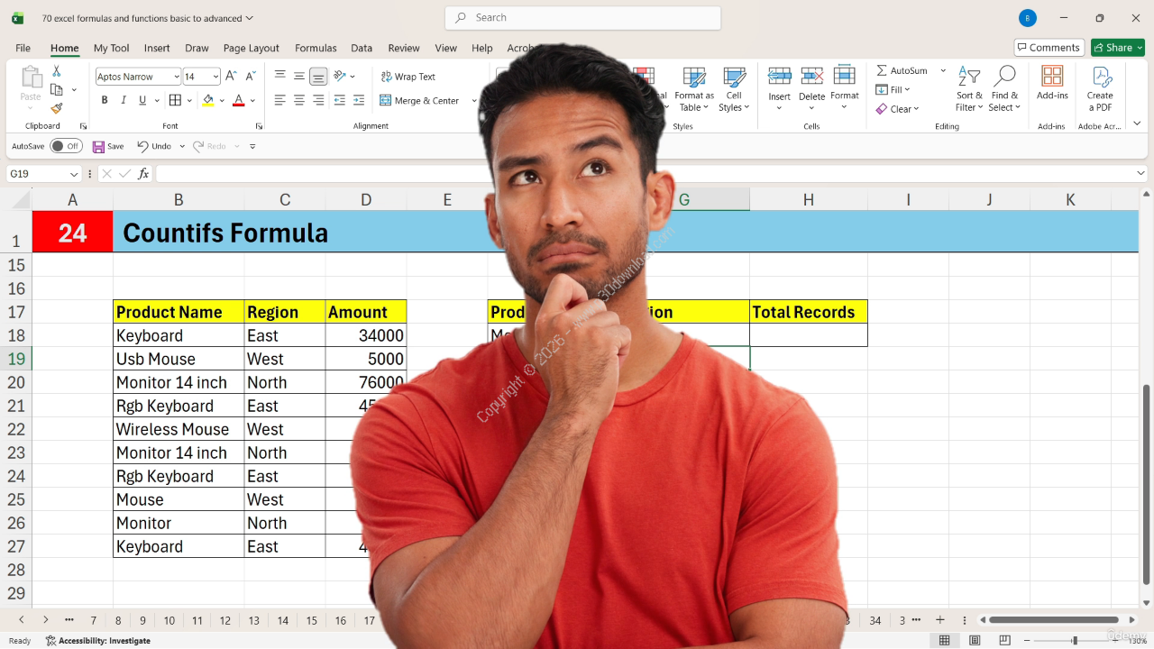 Microsoft Excel is one of the most important skills required in today’s jobs, businesses and daily office work. This course, “50 Excel Formulas – From Basics to Advanced with Practical Examples”, is designed to help you understand and use Excel formulas in a clear, simple and practical way.This course starts from the very BONUS, so no prior Excel knowledge is required. You will gradually learn how to use essential formulas like SUM, SUMIF, SUMIFS, AVERAGE, COUNT, MAX, MIN and PRODUCT to perform accurate calculations.