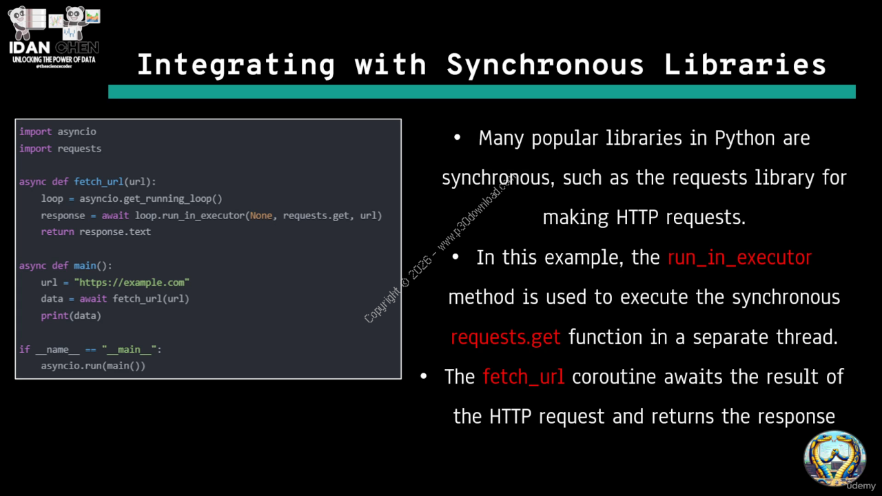Async, AsyncIO, Asynchronous Programming, Await, Backend Development, Concurrent Programming, Coroutines, Event Loop, Futures, Gathering, Non-blocking I/O, Performance Optimization, Python, Python Coding, Python Concurrency, Python Tutorial, Scalability, Scheduling, Tasks, Udemy, آموزش آسینک آی او, آموزش برنامه نویسی, آموزش پایتون, برنامهنویسی ناهمگام, برنامهنویسی همزمان, بهینهسازی عملکرد, توسعه بکاند, حلقه رویداد, پایتون, کوروتین, یودمی,
