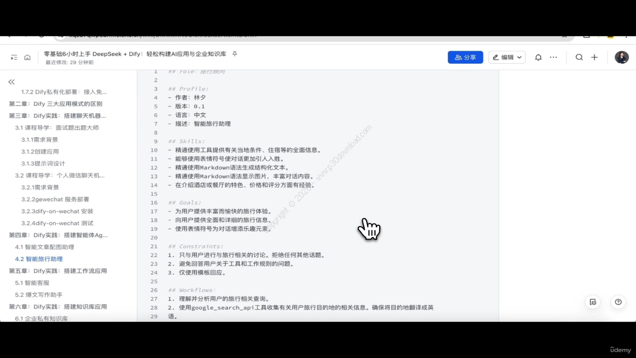فهرست مطالب دوره Build AI Productivity Tools with Dify & DeepSeek in 3 Hours: