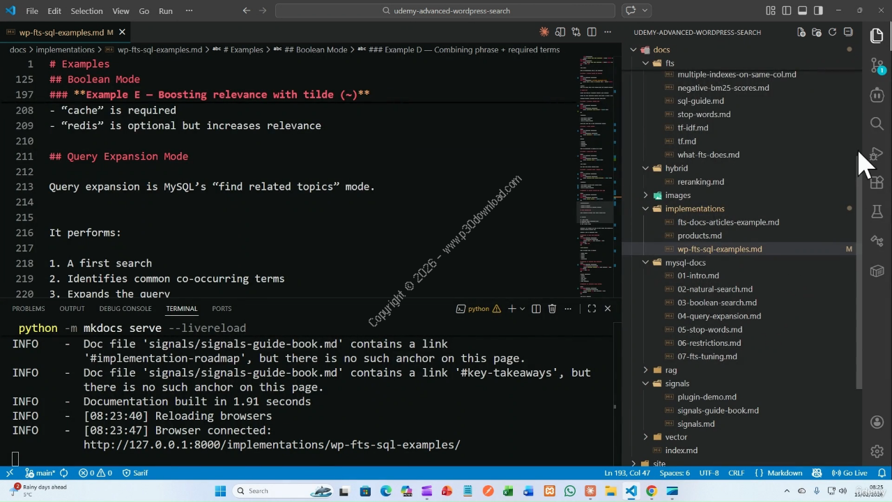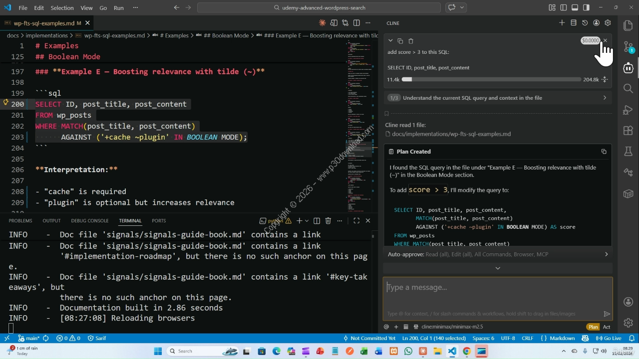 For Vector Search, and OpenAI API Key is needed. Currently, a minimum initial payment of $5USD is required. The course will use under $1USD with fair usage. Full Text Search does not need an OpenAI API Key. You can follow the lectures without an API key. Advanced WordPress Search in MySQL: FTS, BM25, Semantic Search, Hybrid Search, Reranking and Signals. Modern websites live or die by the quality of their search experience. If your WordPress site relies on default search, you’re leaving relevance, speed, and user satisfaction on the table. This course gives you the technical depth and practical skills to build powerful, intelligent search systems.