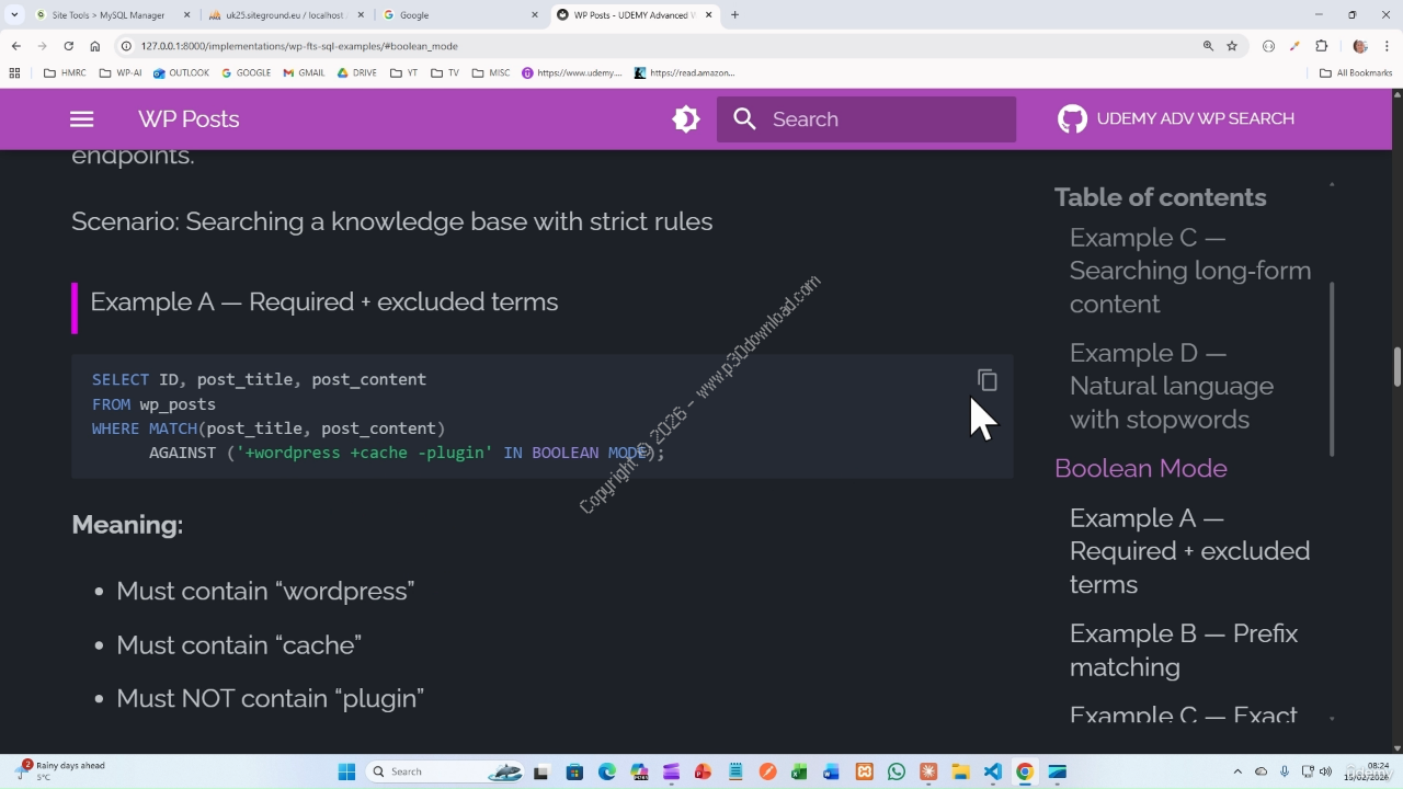 فهرست مطالب دوره Advanced WordPress Search - Full Text And Vector Search: