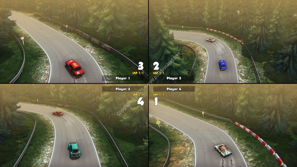 A renewed, unique graphical style carefully crafted down to the last detail, and an original soundtrack that perfectly captures the emotions of rally racing. Buy, sell, upgrade, and customize your cars in the garage, photo mode to show off your skills. Local multiplayer for up to 4 players in split-screen, record your times online and compete with others. Buckle up and feel the adrenaline in every turn.